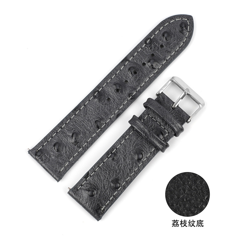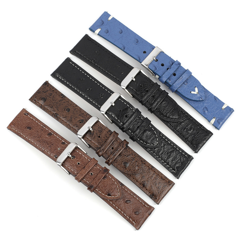 牛皮头层皮真皮手工复古鸵鸟纹表带18 20 22 24mm车线手表带 KZTN