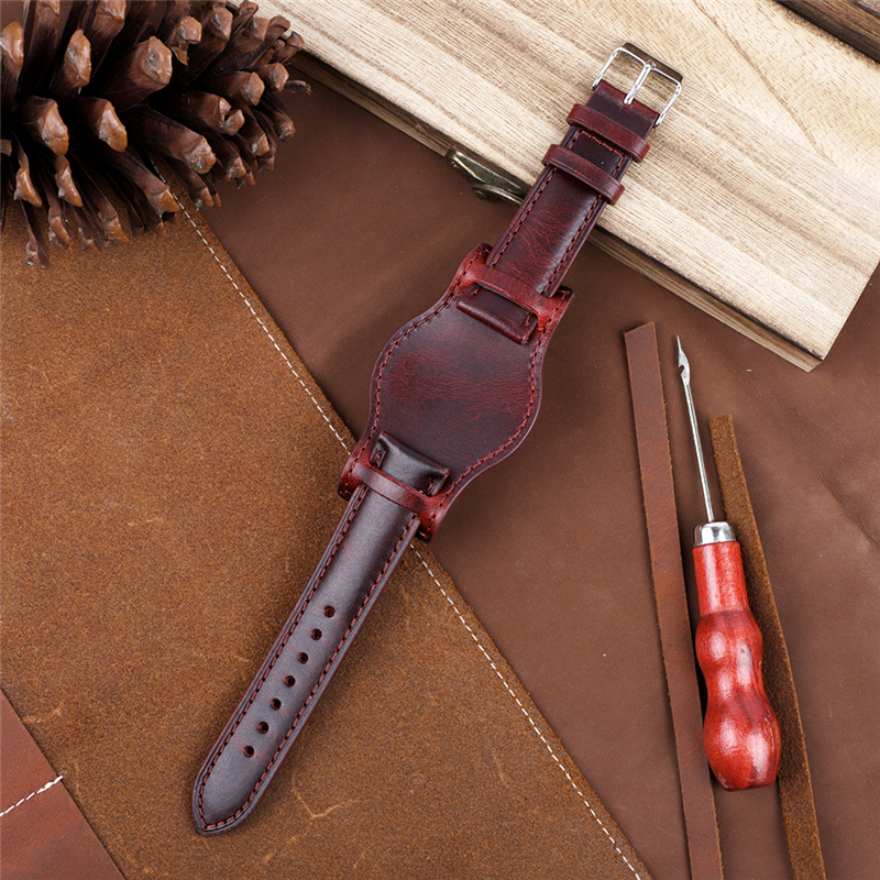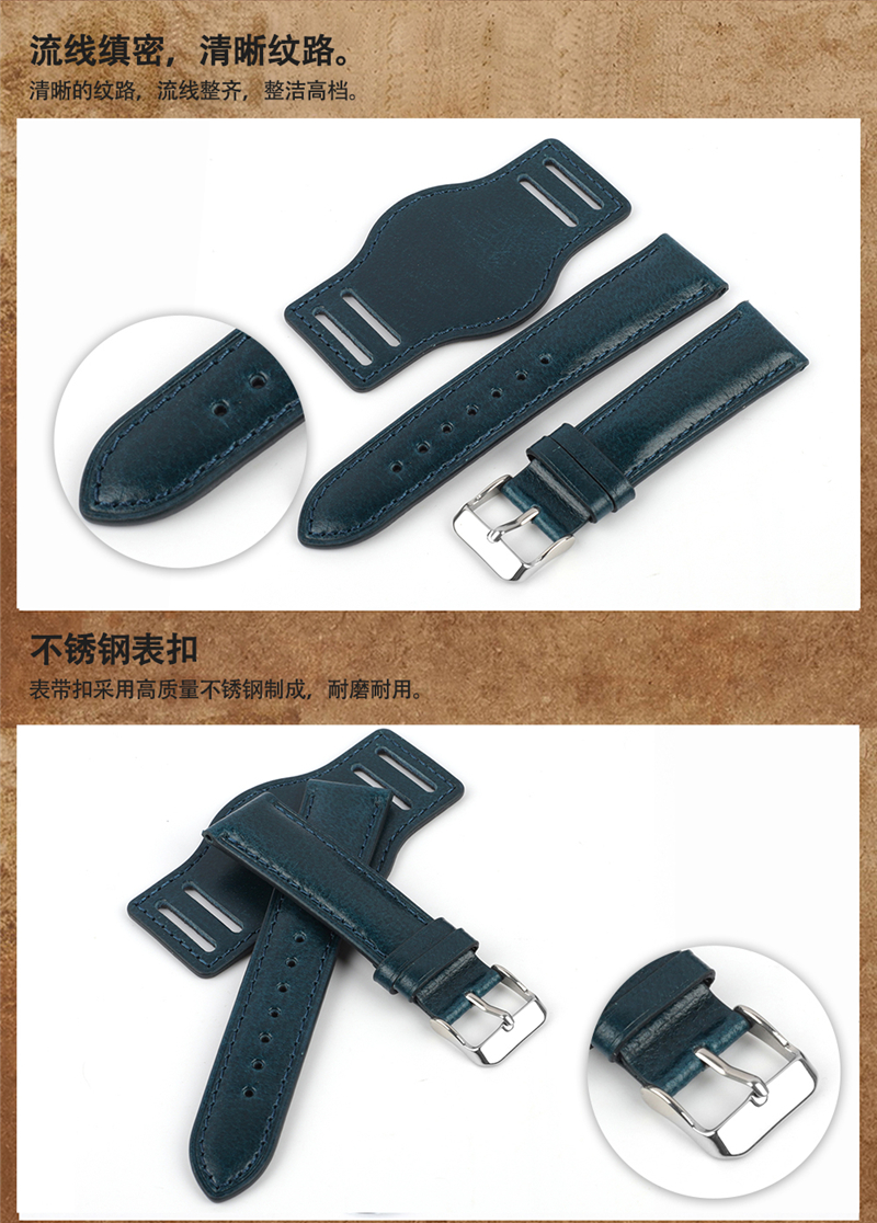 热销底托表带 油蜡皮托盘表带 头层牛皮手表配件通用20/22mm KZBUND08