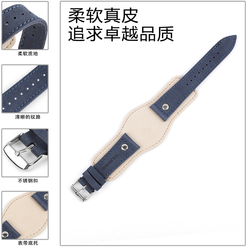 米蓝牛皮手表带 手工擦色复古做旧托盘真皮BUND表带22mm KZBUND03