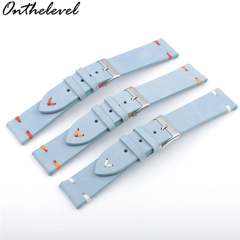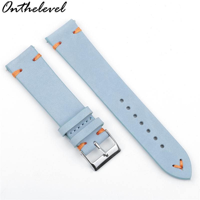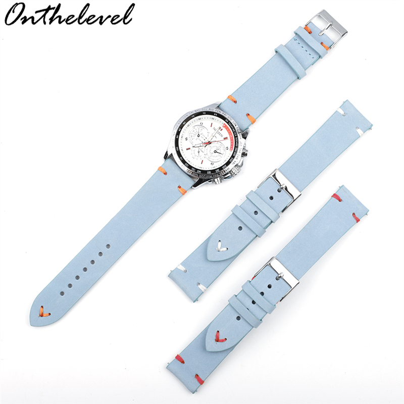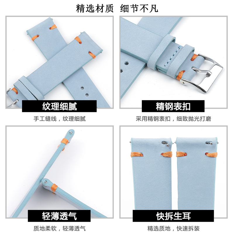 适配天梭/卡西欧/浪琴 磨砂皮车线款真皮表带 快拆生耳手腕带维多利亚海德ins风 KZSD01