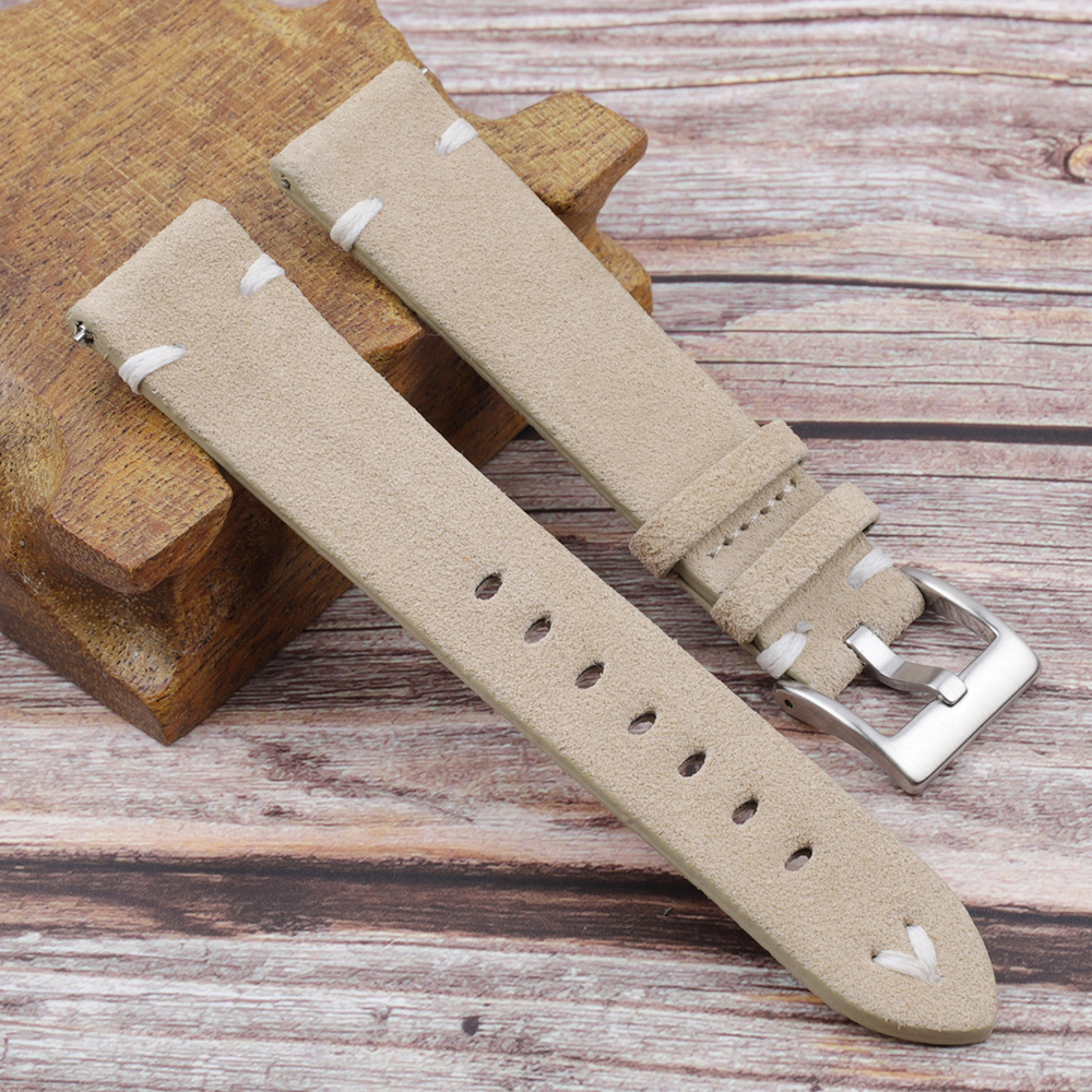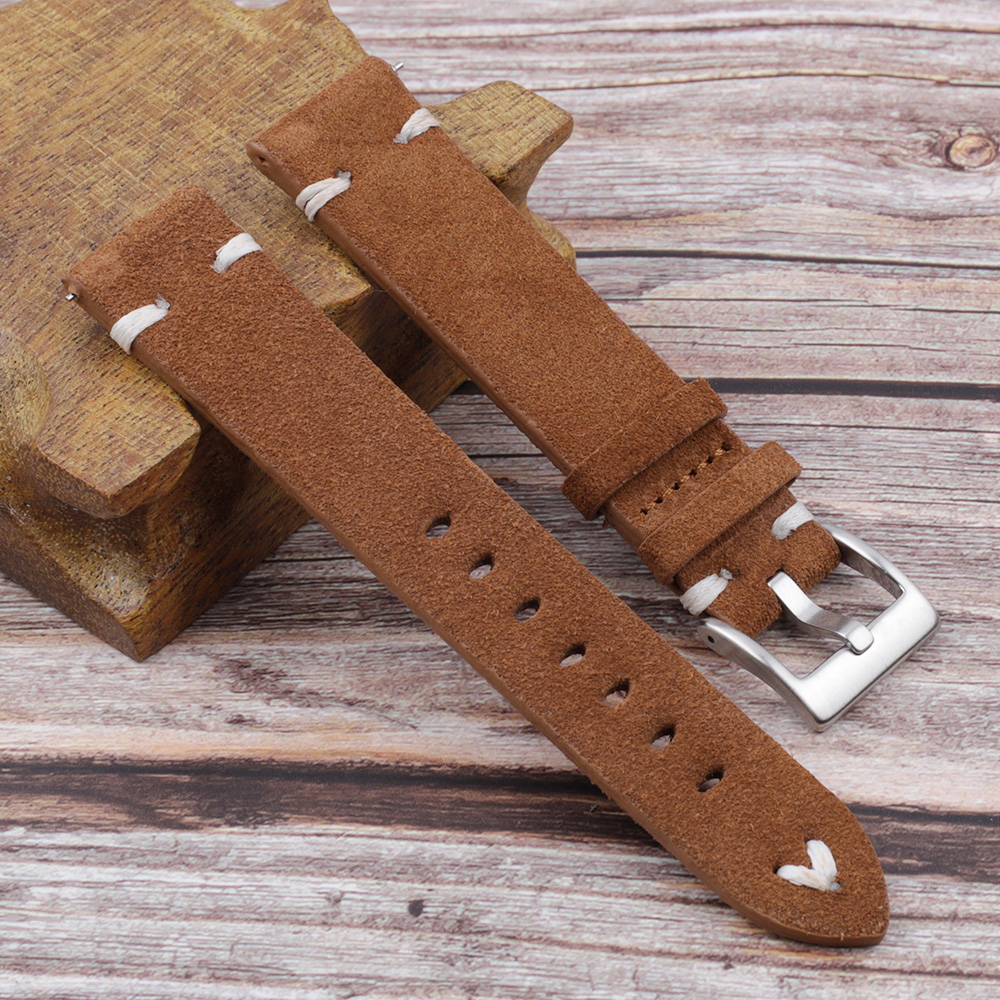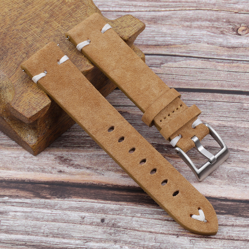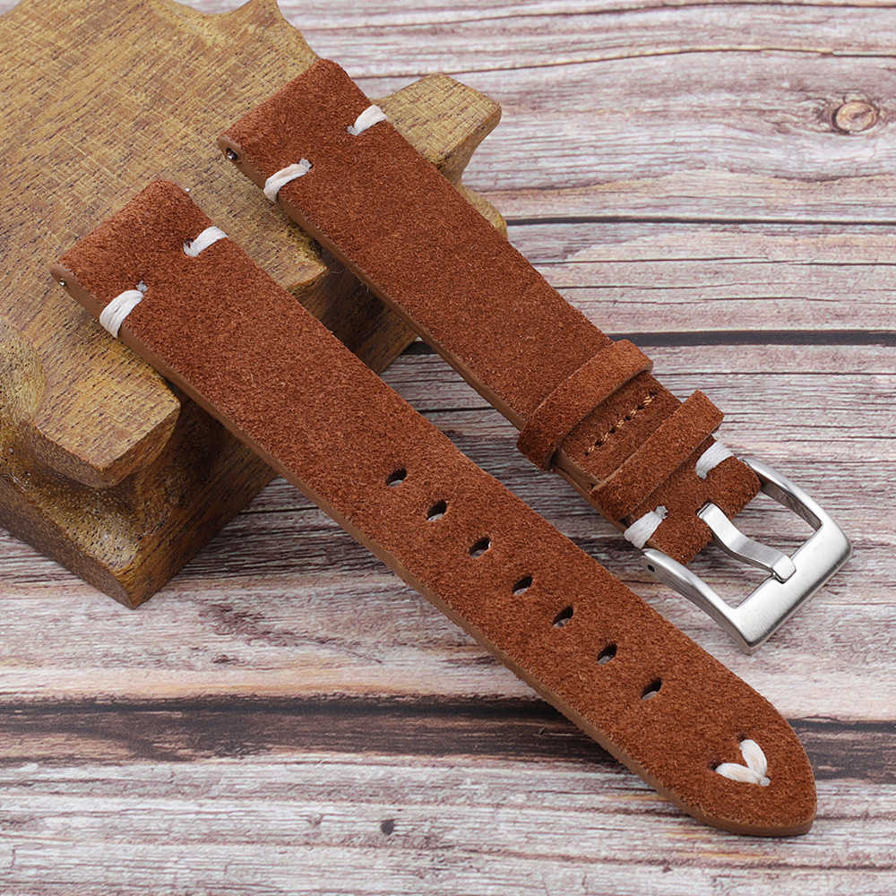 软绒皮牛皮翻毛皮手工复古手表带18 20 22 24mm快拆生耳配件 KZSZ01