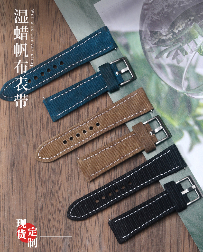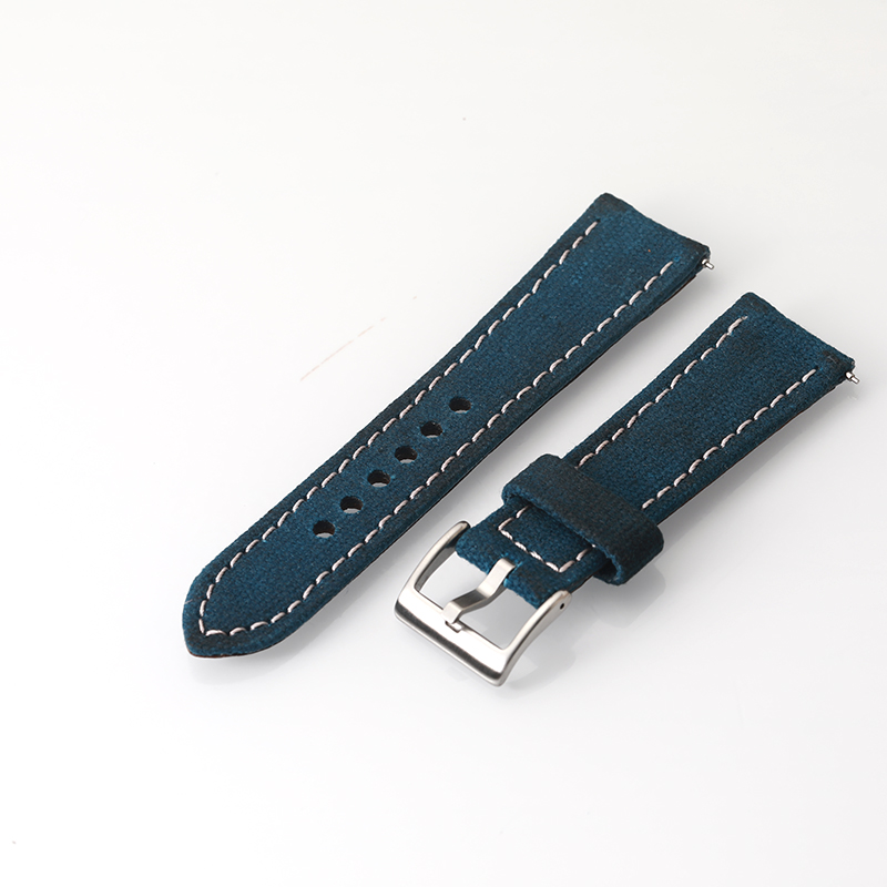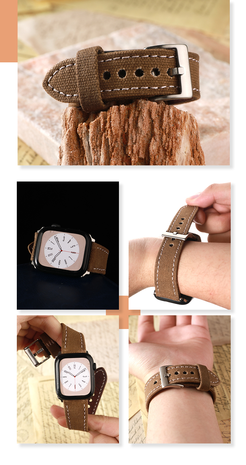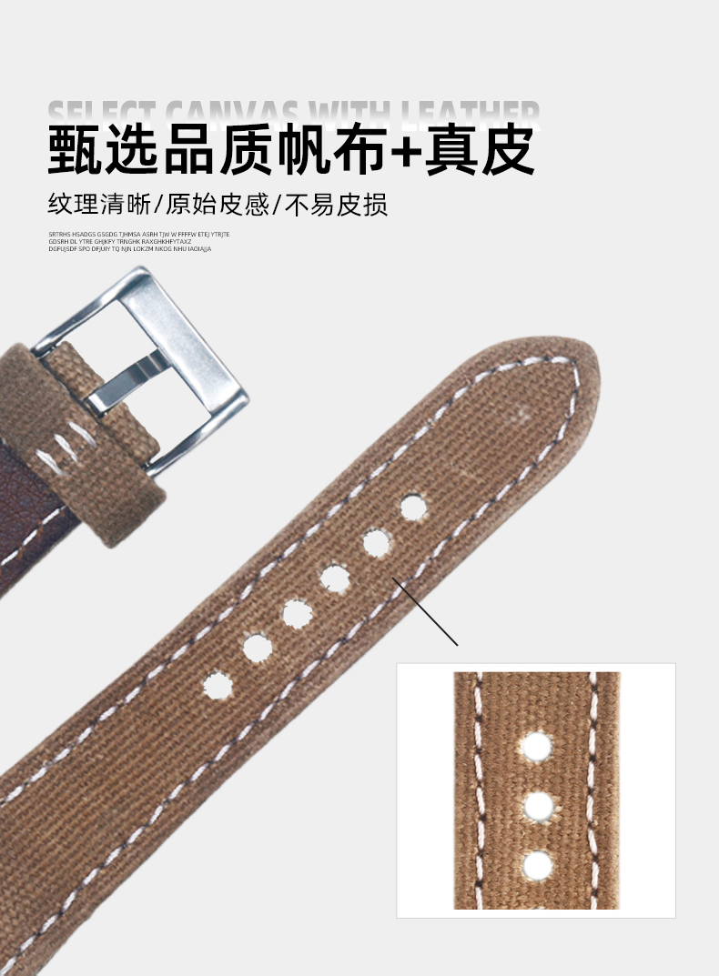24mm复古擦色帆布表带欧洲中世纪风格手工做旧表带开关生耳表带 KZCS09
