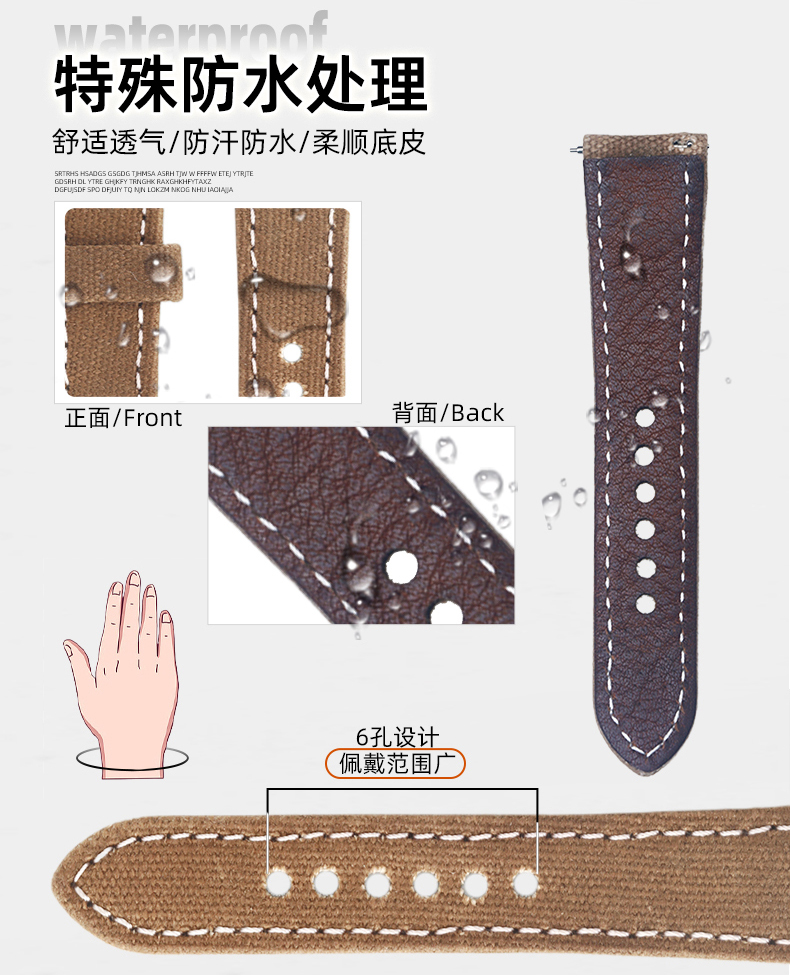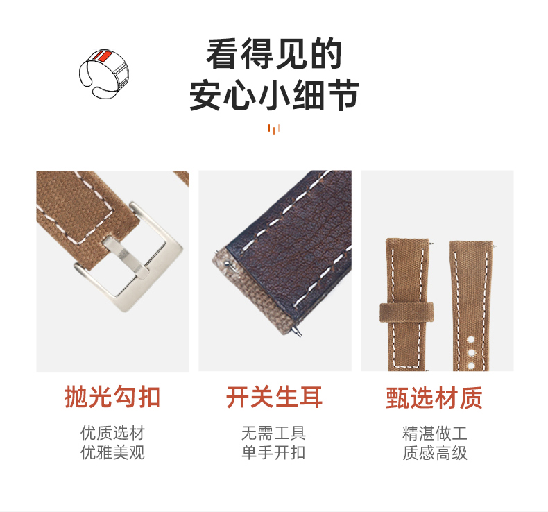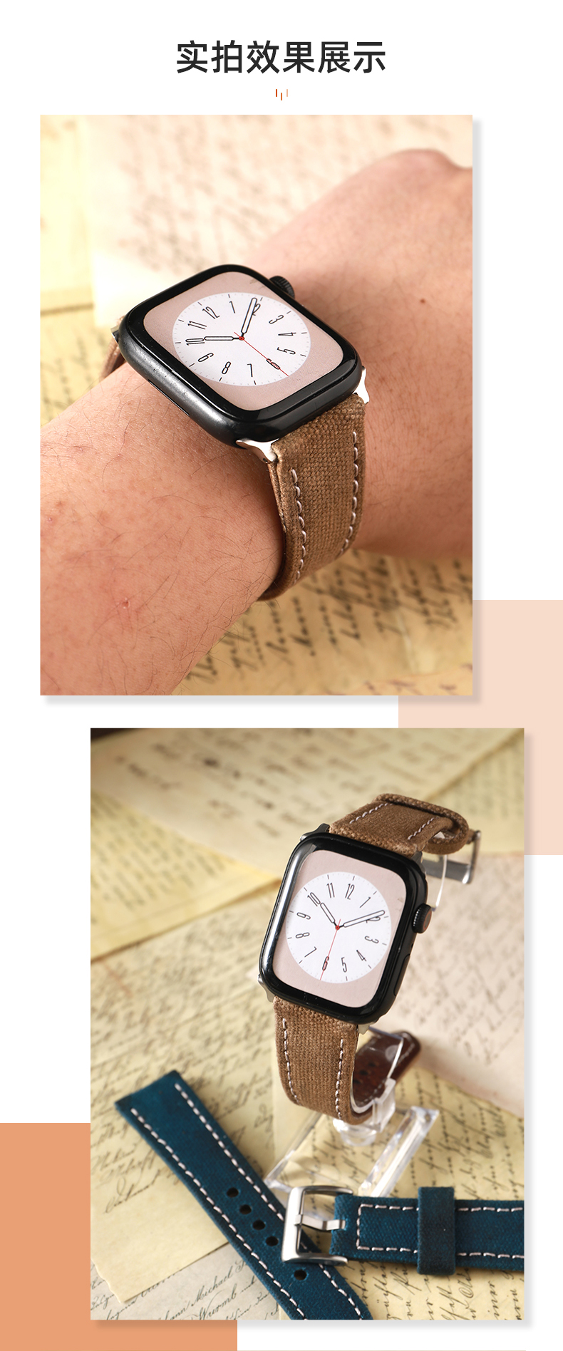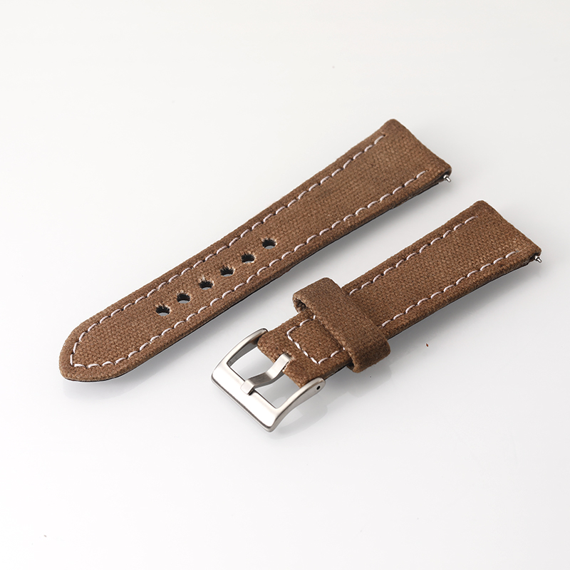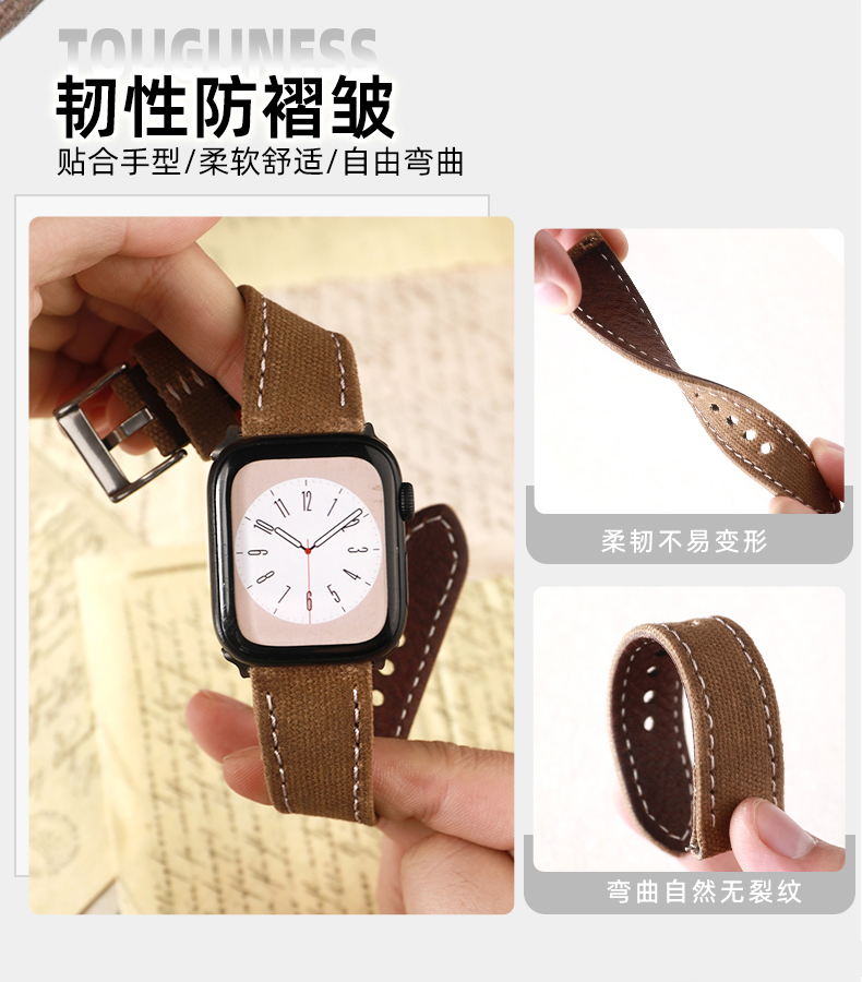 24mm复古擦色帆布表带欧洲中世纪风格手工做旧表带开关生耳表带 KZCS09