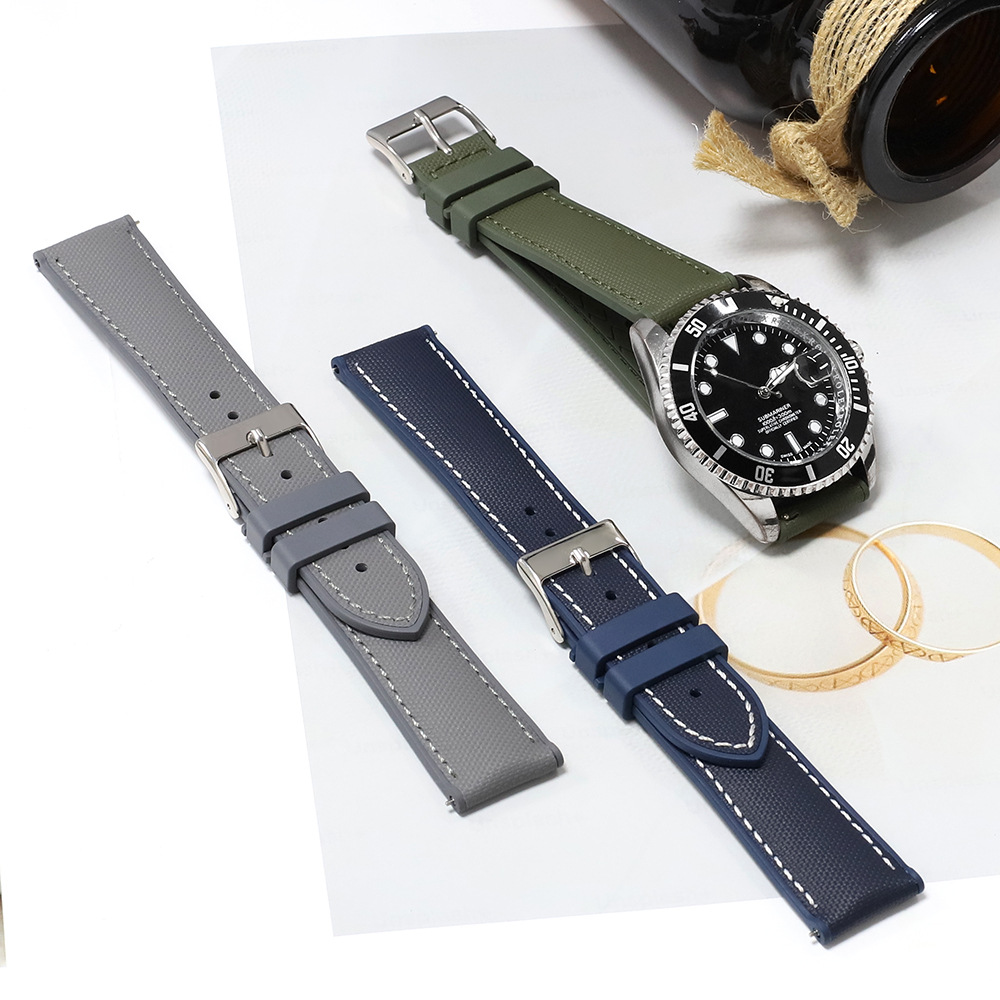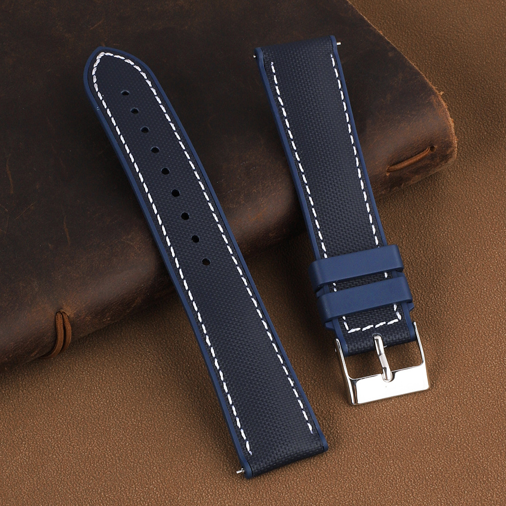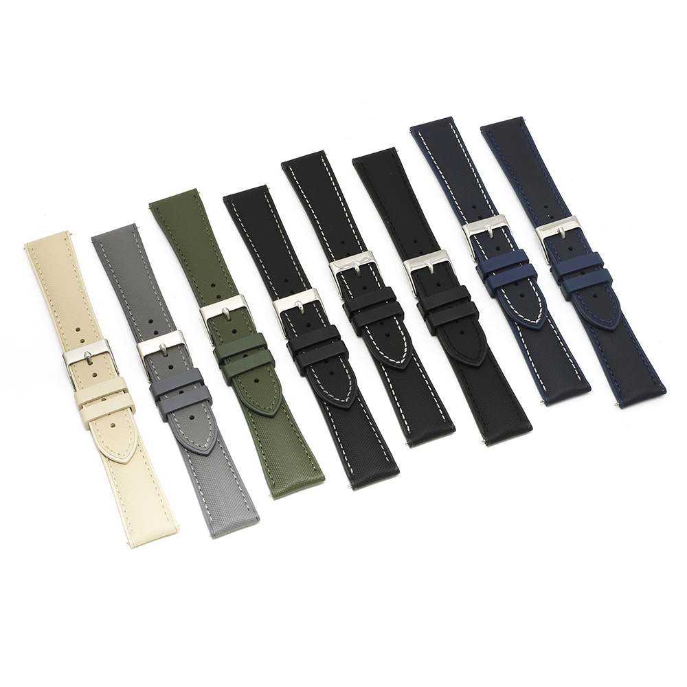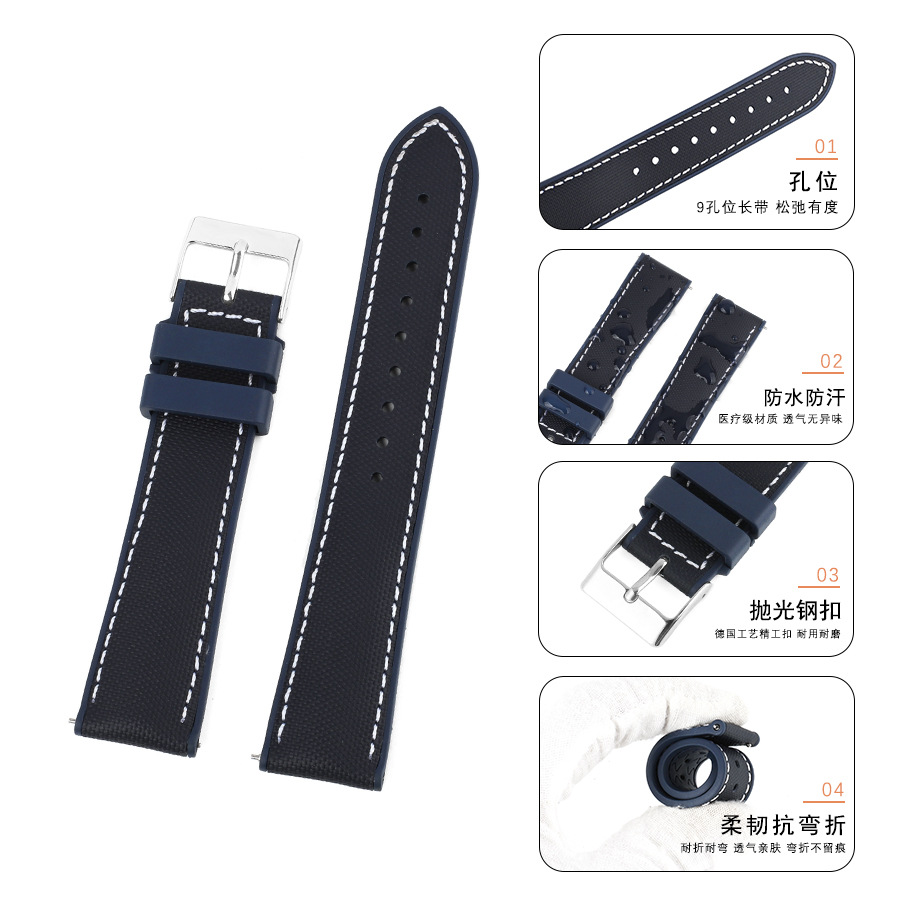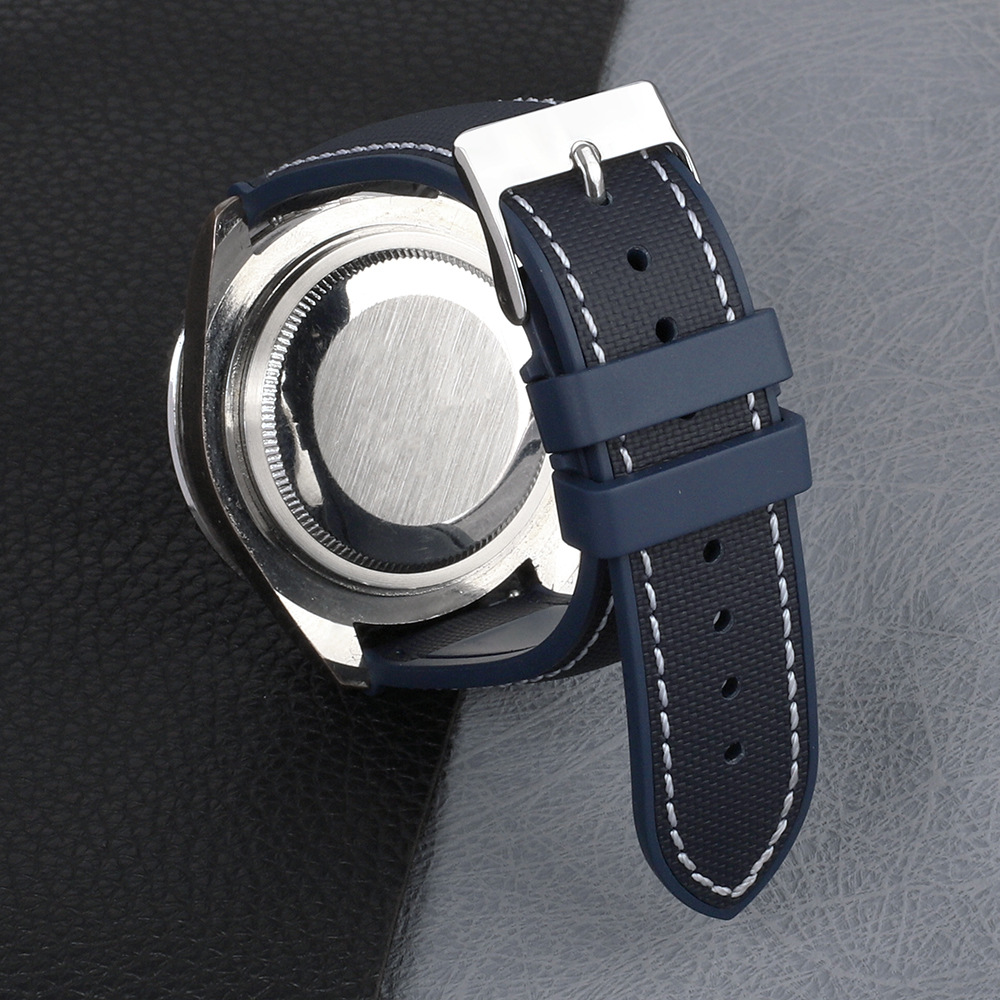 耐磨防水防尘表链快拆牛津布贴合真皮表带 牛津防水布+氟橡胶表带 KZPN43