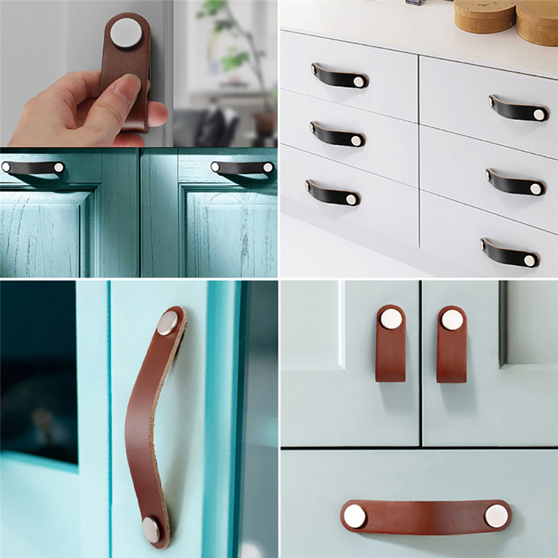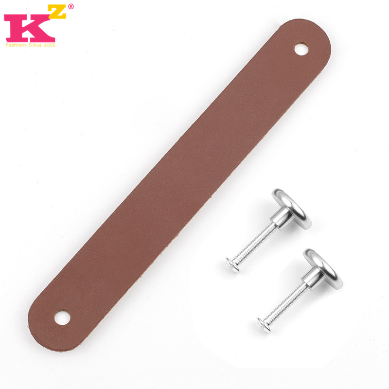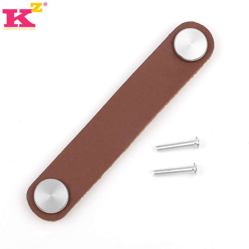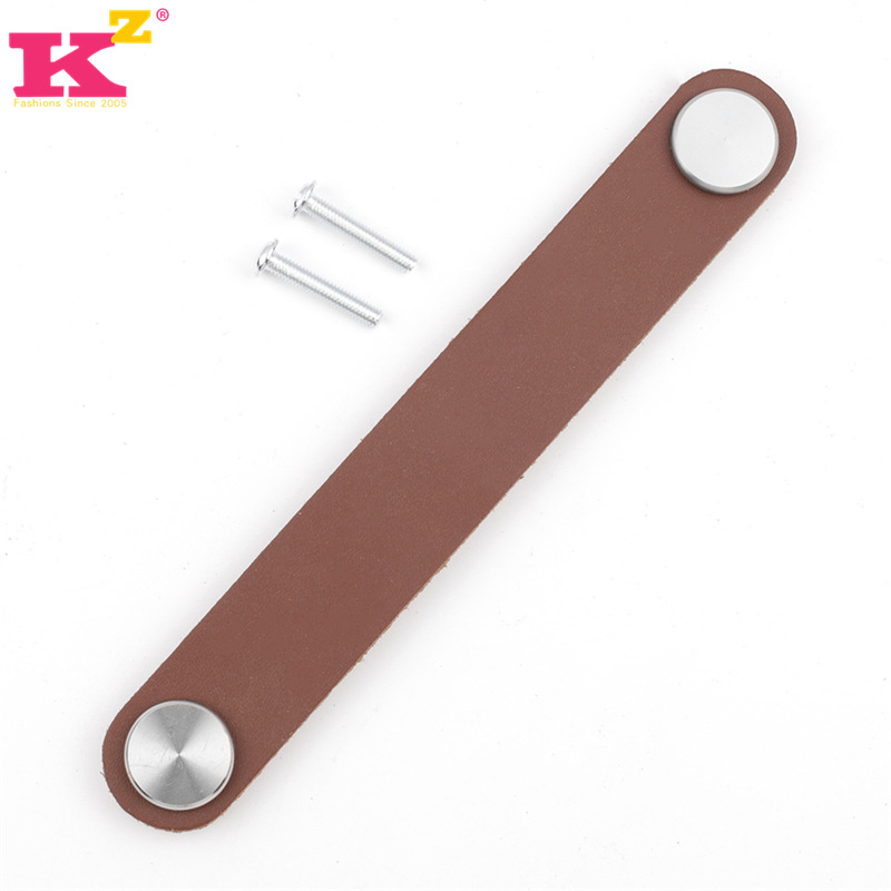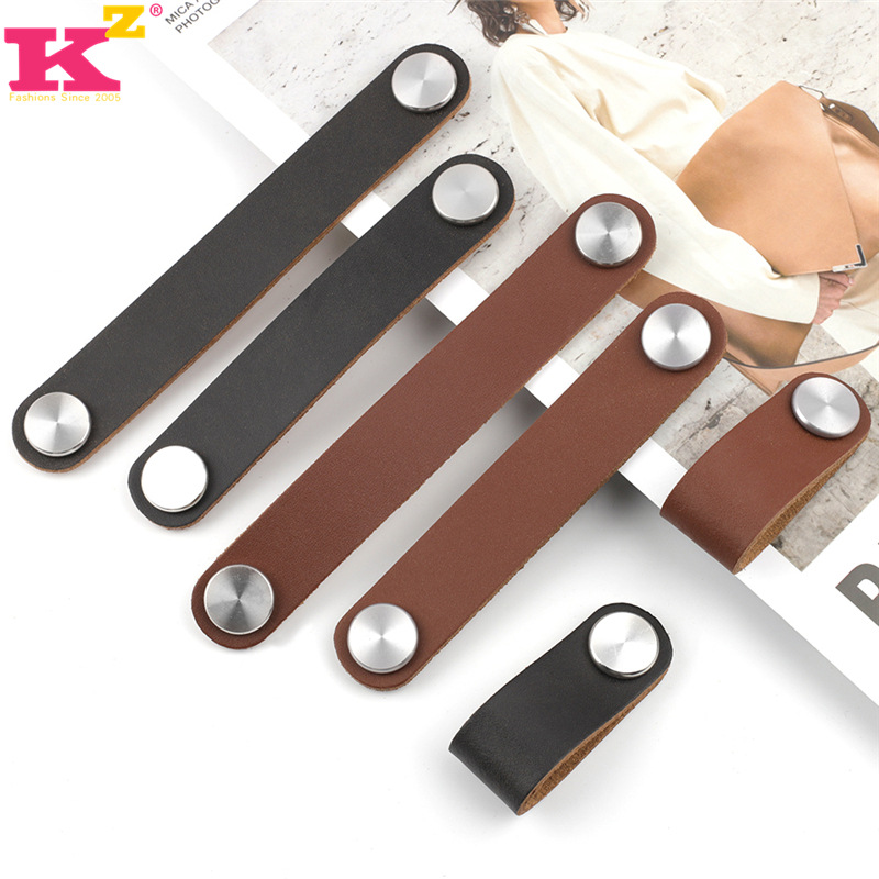 简约欧式皮革拉手单孔黑色衣柜门把手抽屉橱柜门真皮拉手把手 KZ8006