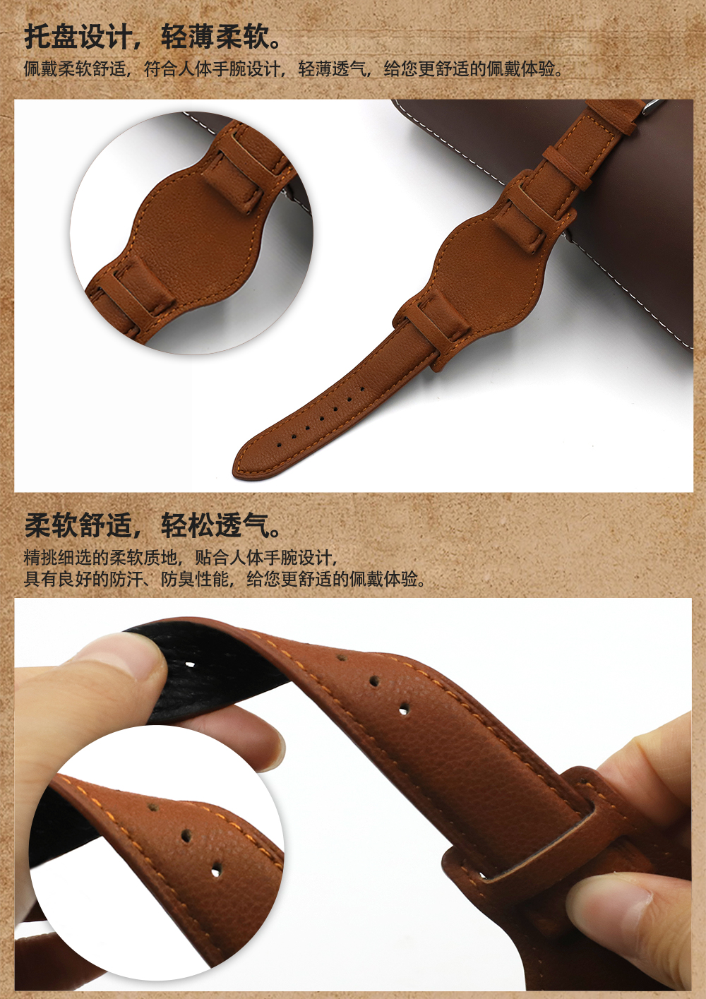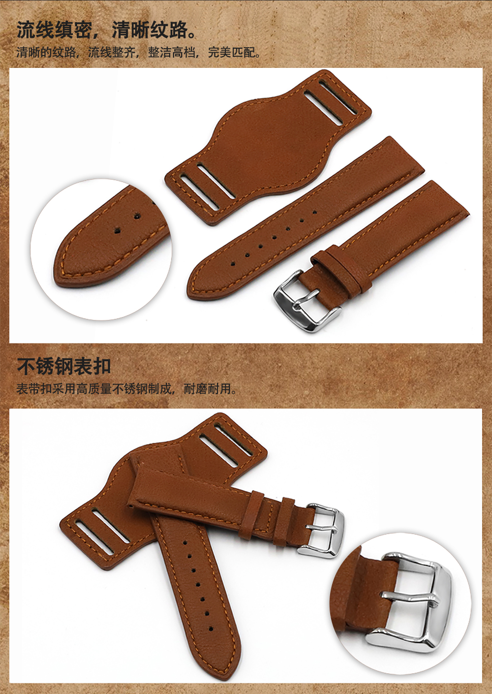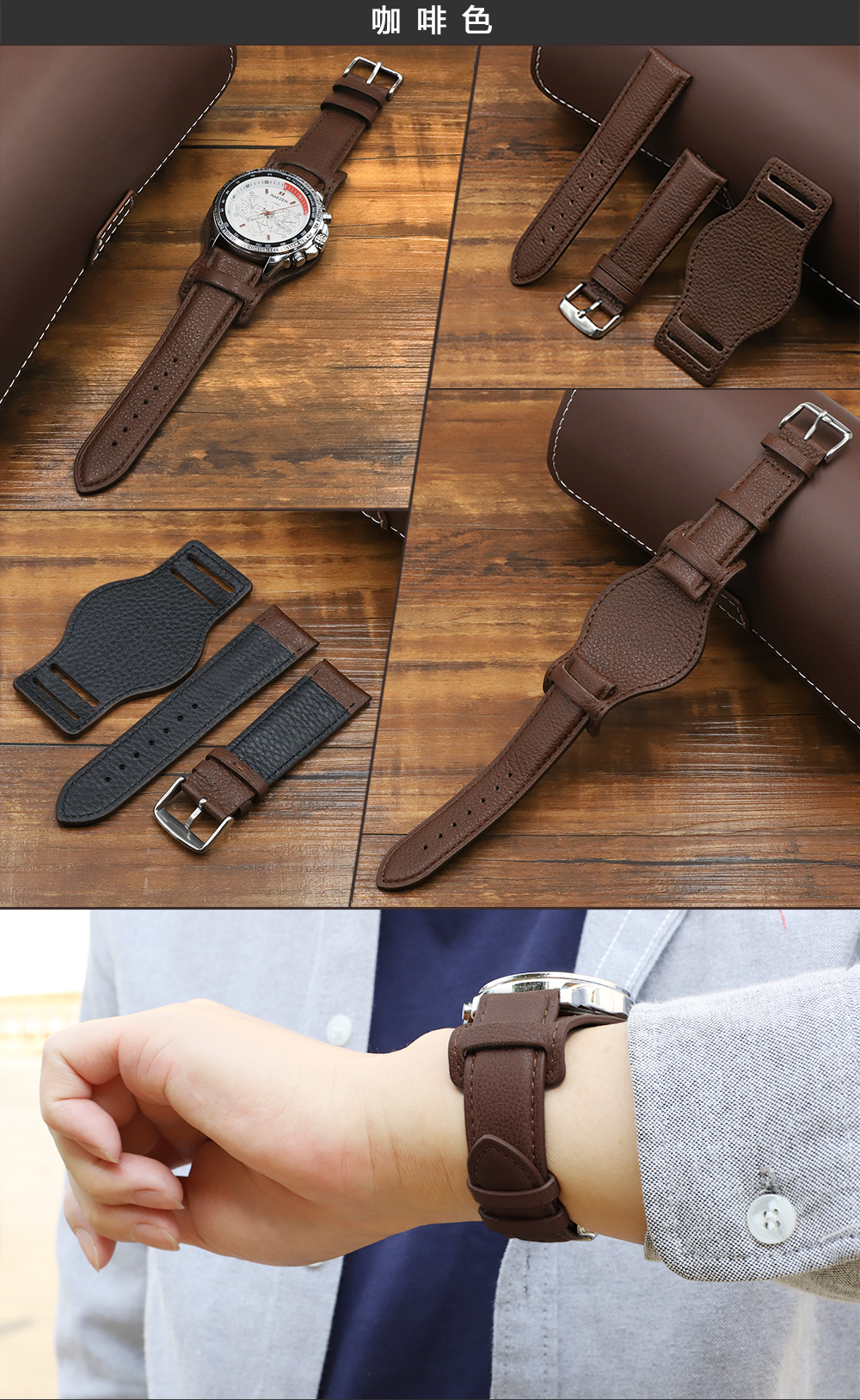 1970s Classic Cowhide Base Tray Watch Strap - Metal Allergy-Free Genuine Leather BUND Strap (18/20/22mm)