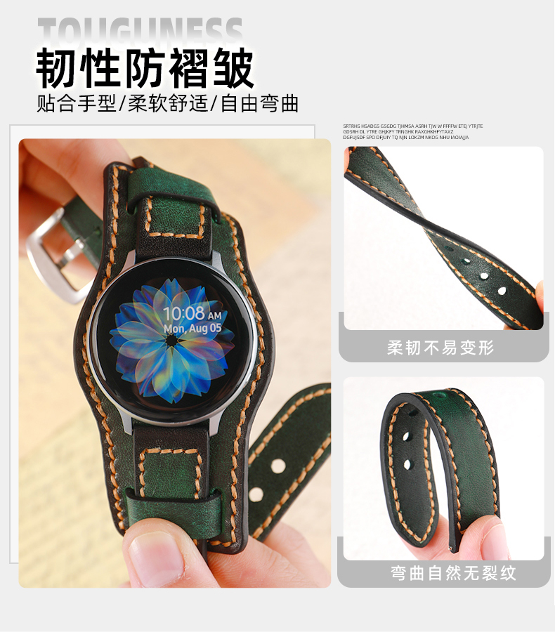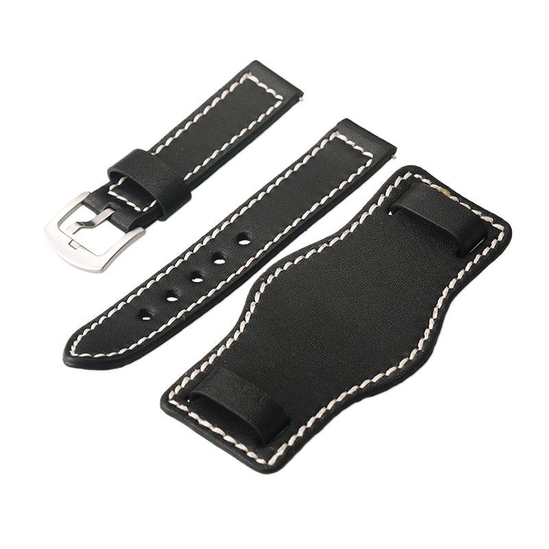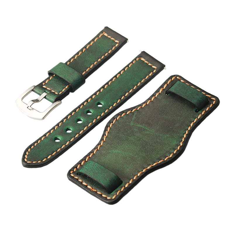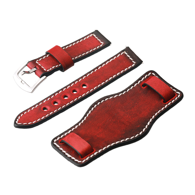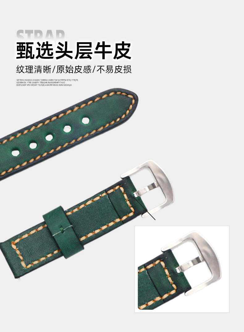 20/22/24mm Full-Grain Cowhide Hand-Dyed Vintage Base Tray Watch Strap - Thick-Stitched, In-Stock Cross-Border Best-Seller