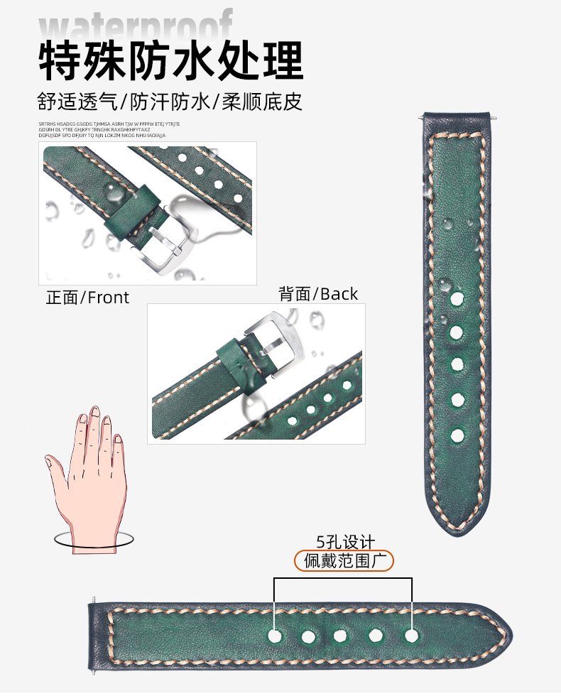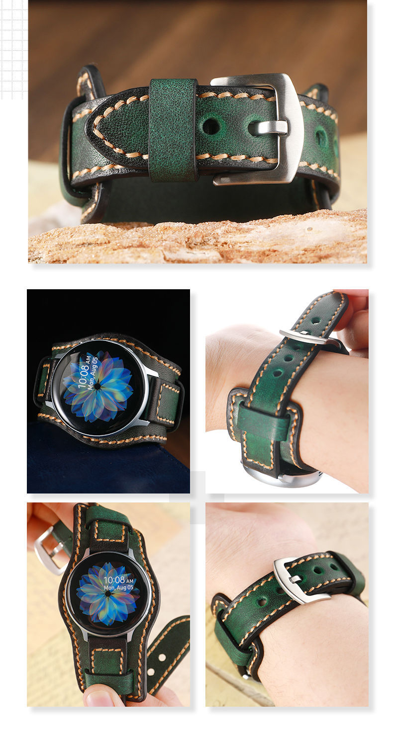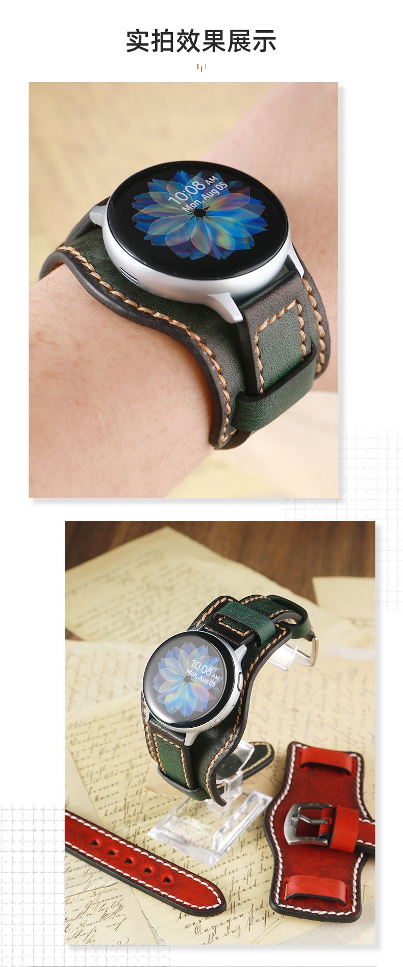 20/22/24mm Full-Grain Cowhide Hand-Dyed Vintage Base Tray Watch Strap - Thick-Stitched, In-Stock Cross-Border Best-Seller